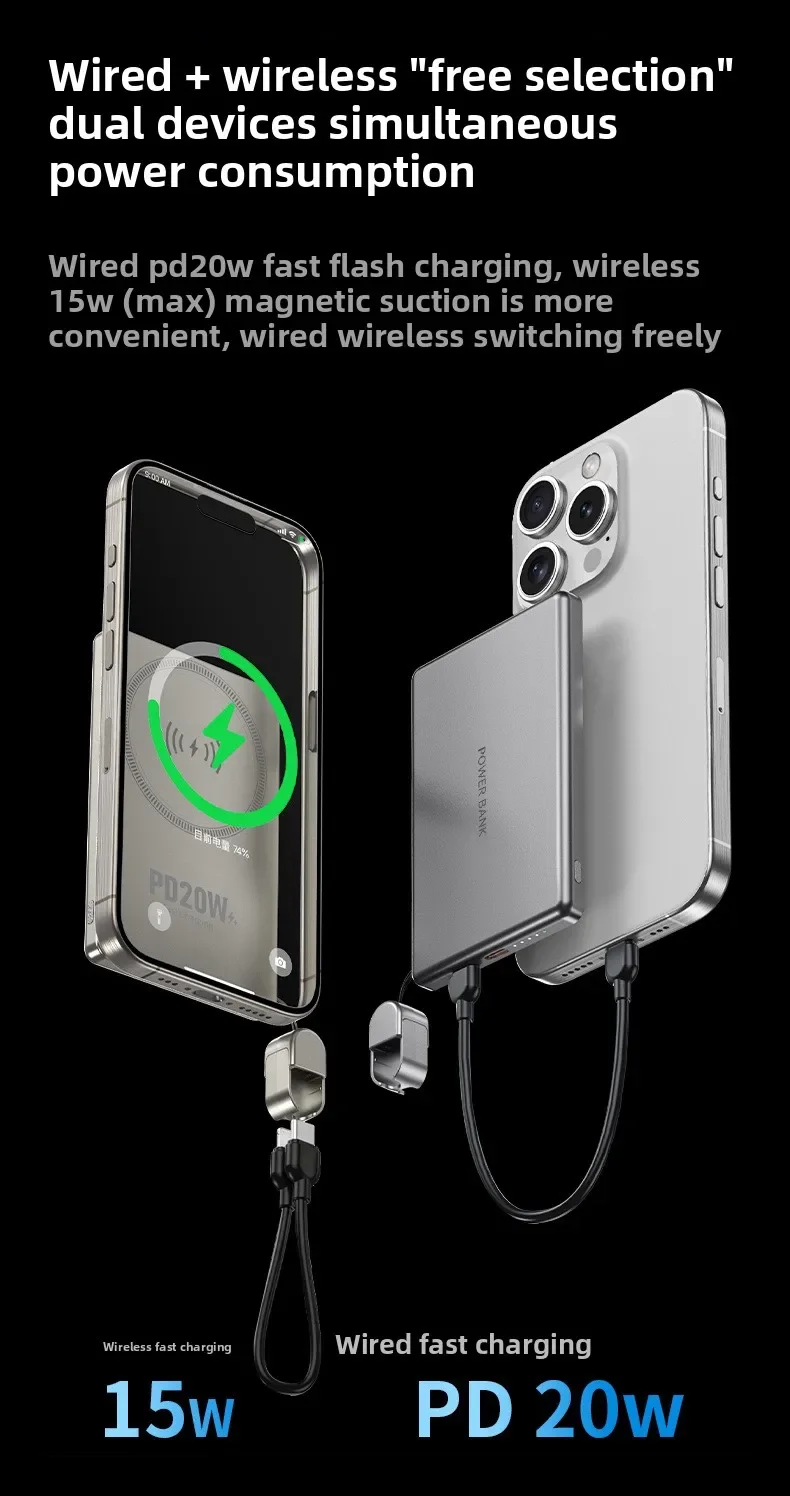 Discover this magnetic external battery which combines elegant design And high-speed performance for convenient and fast charging wherever you are.