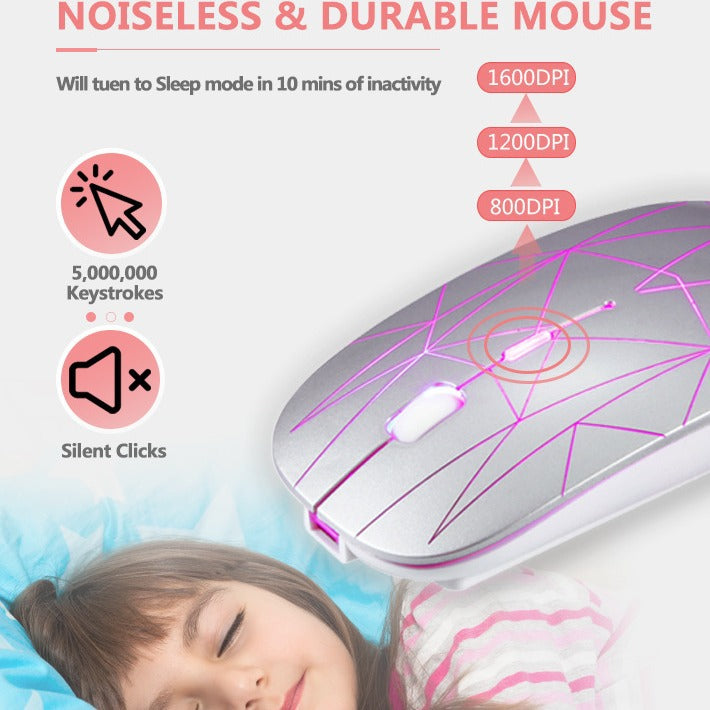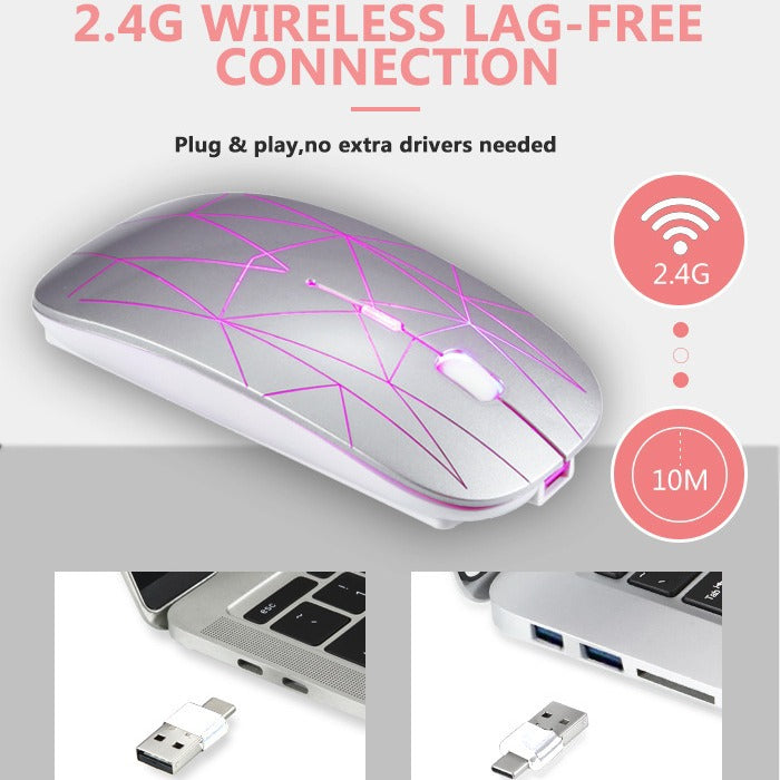 Dual Interface Wireless Mouse (USB-C + USB-A) - Silent, LED Backlit - Compatible with Microsoft Surface & Laptop